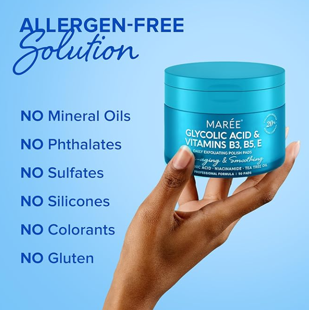 - Toner Pads for Clear, Glowing Skin — MARÉE Glycolic Acid Pads treatment gently exfoliate and cleanse, helping to smooth skin texture and refine pores. These facial cleansing device support brighter, fresher-looking skin with regular use.