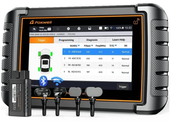 Foxwell NT809TS TPMS and relearn tool gives you whole TPMS service. Activate OEM/Universal TPMS sensors, view sensor data (sensor ID, tire pressure, temperature, etc.). Foxwell T10-sensor to replace bad sensors(Attached 4 PCS Free Sensors, no Need to pay extra!).