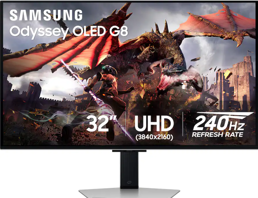 Samsung - 32" Odyssey OLED G8 (G80SD) 4K UHD 240Hz 0.03ms Smart Gaming Monitor with HDR - Silver