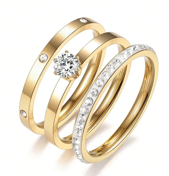 Vacuum Plating Real Gold Plated 18K Gold Solid Color 304 Stainless Steel Elegant Waterproof Non Tarnish Rings