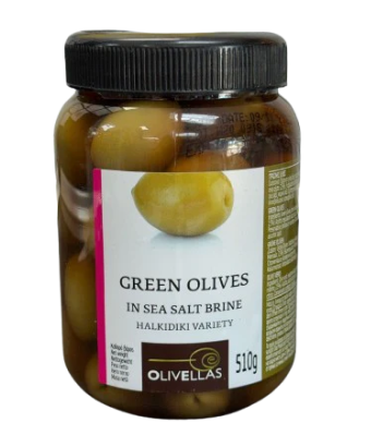 GREEN OLIVES IN SEA SALT BRINE 510 GM