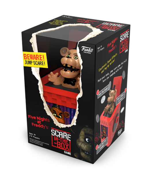 Beware the scare! Push your luck and try to survive in this exciting game inspired by the smash-hit series. Turn the crank as far you dare... but if Freddy pops out, you’re captured! Whether you pass the box or take a risk, Scare-in-the-Box will have you laughing with fear!