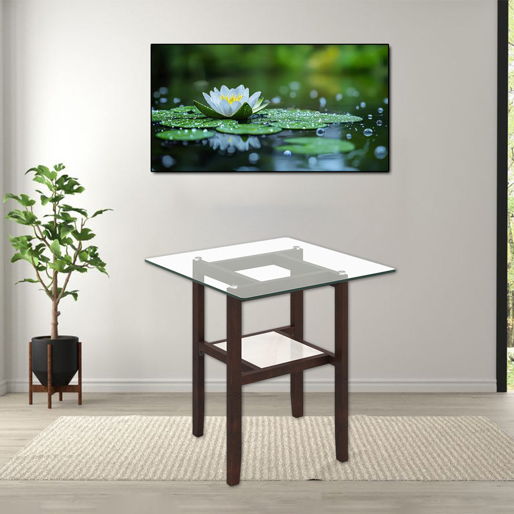 24-Inch Square Glass Coffee Table With Double Layers And Built-In Storage Shelf. High-quality product suitable for regular use.