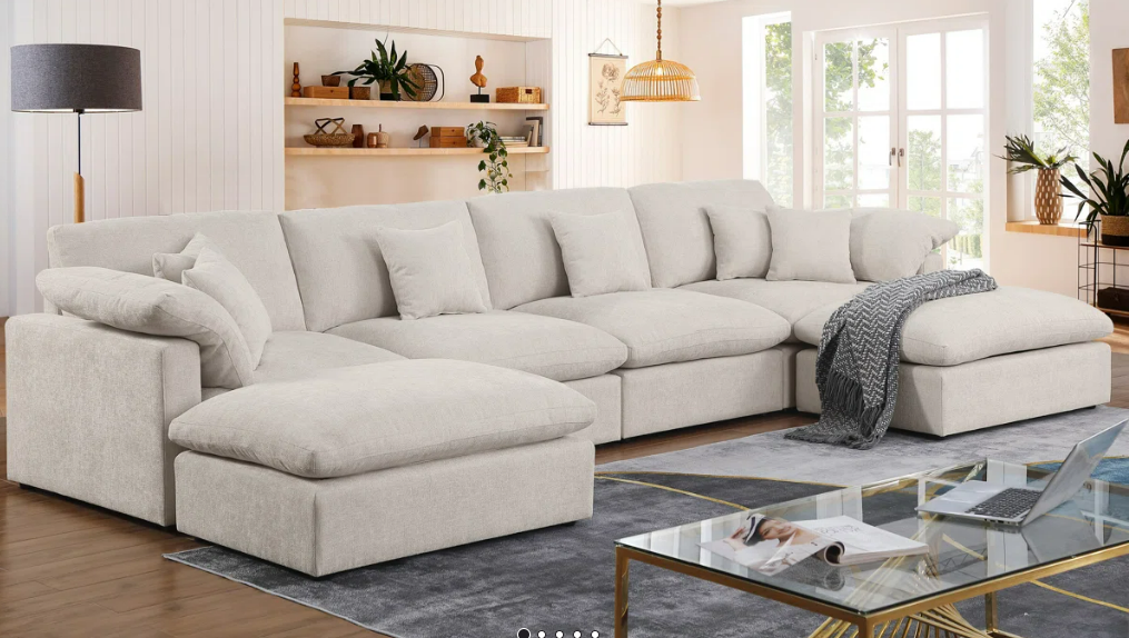 6 - Piece 155.7" U Shape Sectional Sofa Cloud Couch With Removable Ottomans