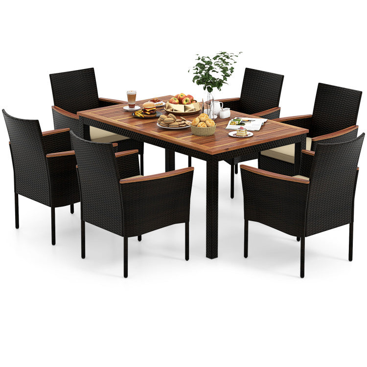 7 Pieces Rattan Patio Dining Set With Stackable Chairs And Umbrella Hole. High-quality product suitable for regular use.