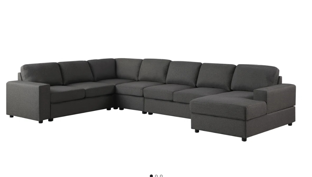 This reversible corner sectional seats up to six people, so there's plenty of room for family and friends on movie night. The chaise is reversible, making it easy to arrange it how you want in your living room. It's crafted with a solid and engineered wood frame, and it rests on sleek round legs with a black finish for a modern silhouette. This sectional is wrapped in a linen blend, offering you and your guests a textured place to relax. The cushions are filled with foam and supported by hand-tied springs for a balance of padding and stability. Plus, this sectional has a slightly angled back for an extra layer of comfort.