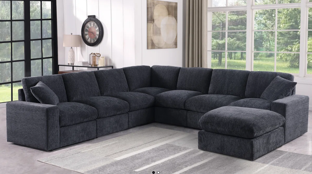 This L-shaped sectional seating component seats up to eight, so it's a spacious gathering spot to entertain friends. It's made with an engineered wood frame that rests on black-finished square feet, and it's wrapped in a linen blend for a textured feel. The cushions are filled with foam and supported by eight-way hand-tied springs to resist sagging. We love that the seat cushions are removable, so it's easy to vacuum up those inevitable crumbs. This sectional even arrives with 2 toss pillows for an extra layer of texture.