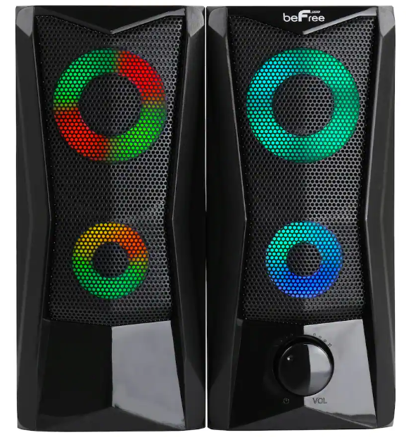 Experience your favorite games on a whole new level with the beFree Sound 2.0 Computer Gaming Speakers. Innovative speakers deliver nuanced sound in clarity Elevated sound quality without distortion allowing you to transform yourself to uncover new worlds. Features RGB lights and universal USB connection for desktop and laptop computer. Simple On/Off and volume controls. The power is at your fingertips. Item Dimensions: 6.85" x 3.01" x 3.74" Item Weight: 1.67lbs