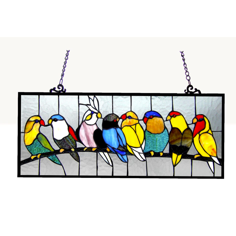 Birdies Tiffany-Glass Featuring Birds Window Panel 25.5x10.5. High-quality product suitable for regular use.