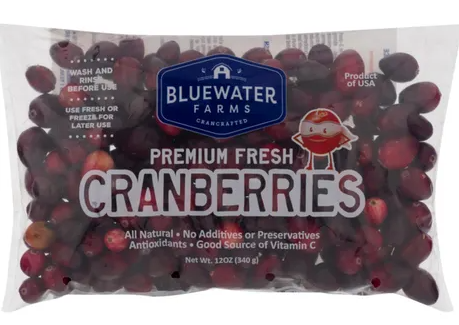 Bluewater Farms Cranberries, Premium Fresh, All Natural, Bag