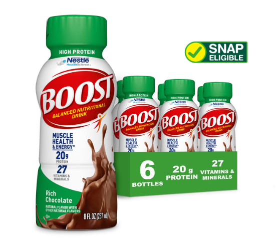 BOOST 20g High Protein Nutritional Drink Shakes, Rich Chocolate, 8 fl oz, 6 Pack