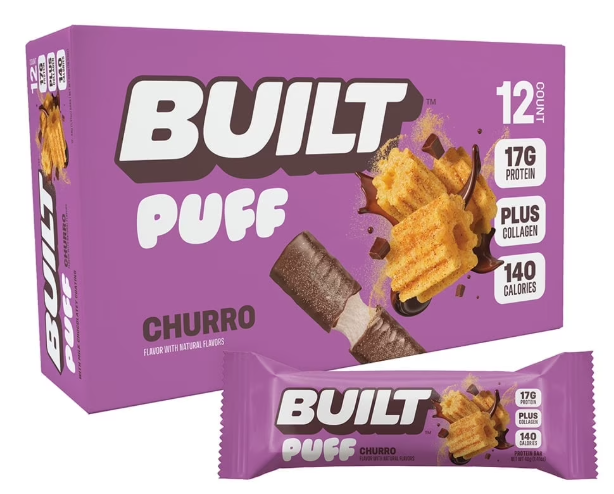 Built Bar, Puff Protein Bar Snacks, Churro, 17g Protein, Collagen, 12 Count Box