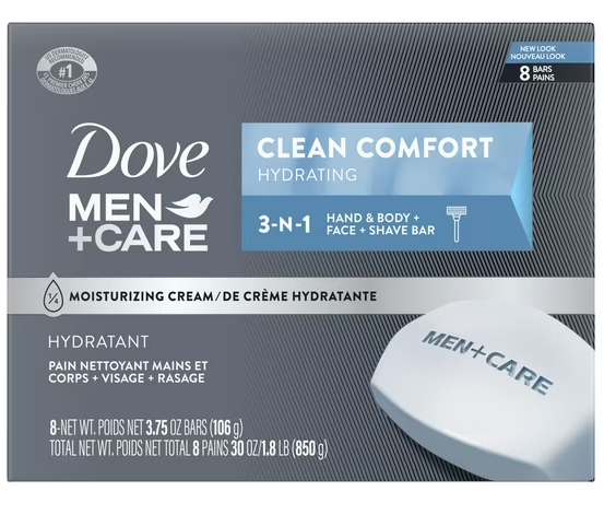 Dove Men+Care Body + Face Bar Mild Formula All Skin Type, Clean Comfort, 3.75 oz 8 Bars
