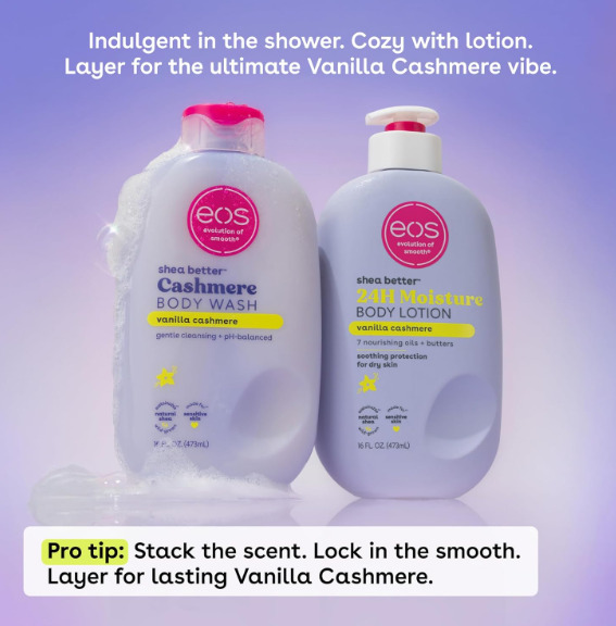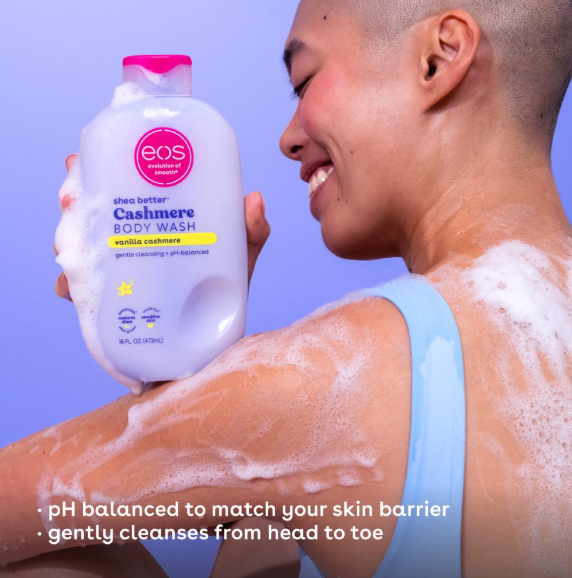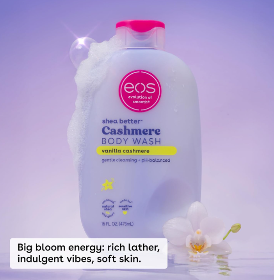 eos Shea Better Cashmere Body Wash, Vanilla Cashmere, Moisturizing, pH Balanced Body Wash, Creamy Gel Formula, Paraben & Phthalate Free, Sensitive Skin, 16 fl oz