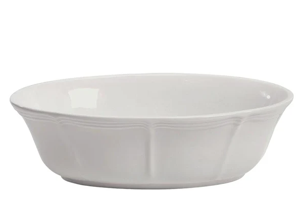 Gently scalloped edges and curves on these generous sized pieces add grace every time you set the table. Its rich cream color makes French Countryside a perfect base pattern to mix with colorful accent pieces. A best selling pattern, a complete suite of accessories is available to create a classically stylish casual dining statement. An oval bowl will fit well on your table and is easy to hold when passing food to family and friends. Crafted of stoneware. Microwave and dishwasher safe. Oval serve bowl measures 10-1/2 inch long x 6-5/8 inch wide x 3-1/4 inch high and holds 44 ounces.
