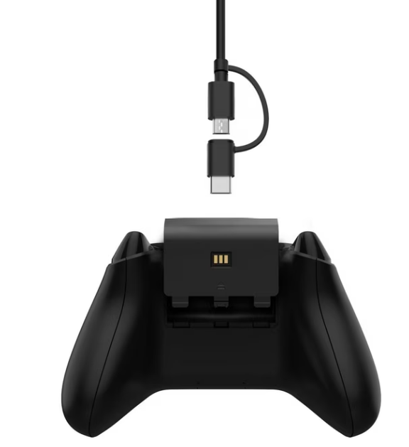 Stay charged, play longer. The GameStop's Play & Charge battery kit for Xbox features two 1200mAh rechargeable battery packs for all day, non-stop gaming. Each battery pack provides up to 30 hours of gaming with a full charge! The USB-C port allows you to play while charging and is charged to 100% within 4 hours. The battery pack and battery covers are compatible with GameStop's controller sleeves and allows for direct charging with the Dual Charging Dock.