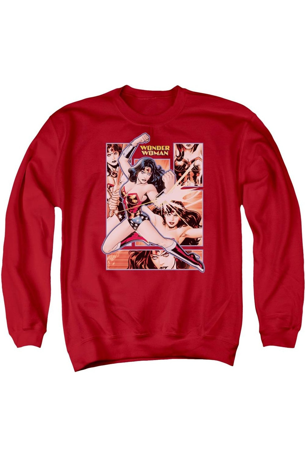 Justice League Of America Wonder Woman Panels Adult Crewneck Sweatshirt. High-quality product suitable for regular use.
