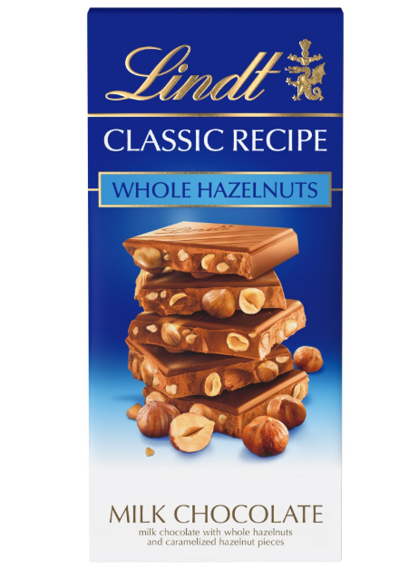 Lindt CLASSIC RECIPE Whole Hazelnut Milk Chocolate Candy Bar