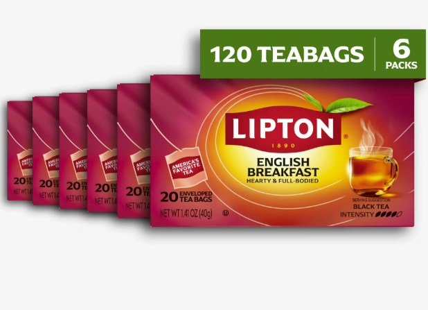 Lipton English Breakfast Black Tea Bags, Caffeinated Black Tea, 20 count, pack of 6