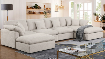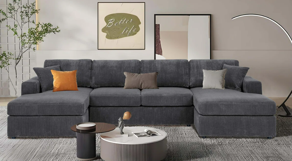 This sectional seats 4 with ease. It has an engineered wood frame, foam-filled cushions, and corduroy upholstery. The 3-piece set includes 1 sofa seat and two chaise seats. Use a U-shaped configuration to gather around the coffee table for a board game, and switch to a large platform for your next nap or movie marathon. Streamlined rectangular seat and back cushions, square arms, and a low-profile design give this sofa a minimalist look that works in any traditional or modern home. Plus, removable cushions and cushion covers make couch maintenance seamless.