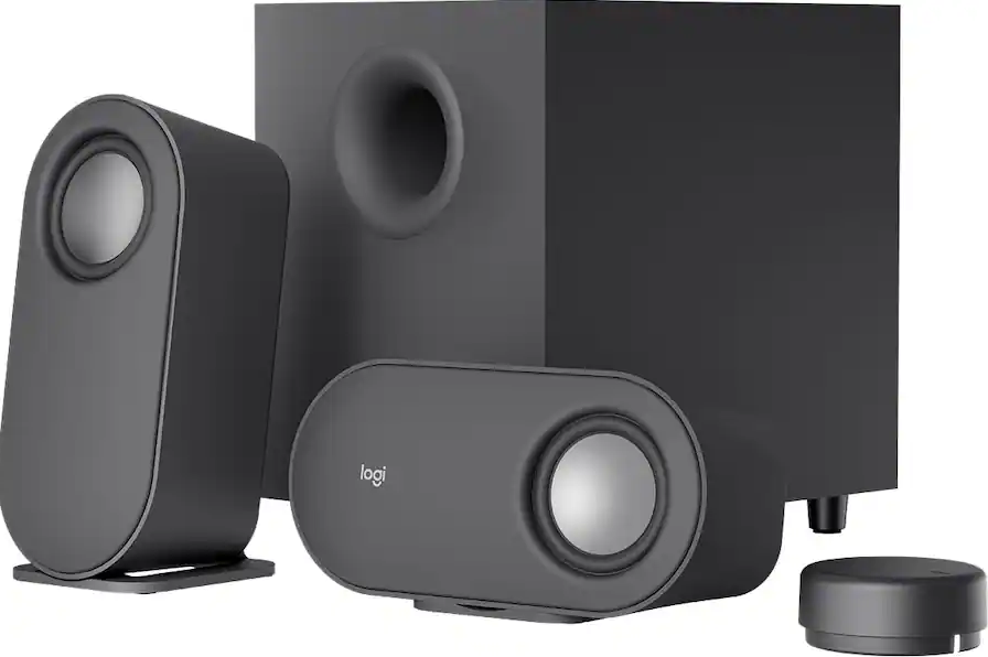 Dial into great sound for your desktop with Z407 Bluetooth computer speakers. Get immersive sound with a down-firing woofer that adds “boom” to your sound, and digital signal processing that keeps clarity across the sound spectrum. Stylish oval satellite speakers lay horizontally or vertically. Position them however you like to curate your space. Control it all with the Bluetooth-enabled wireless control dial. Adjust bass and volume, skip and pause tracks, from up to 20-meter line of sight range. Connect with Bluetooth, micro USB, or 3.5 mm inputs.