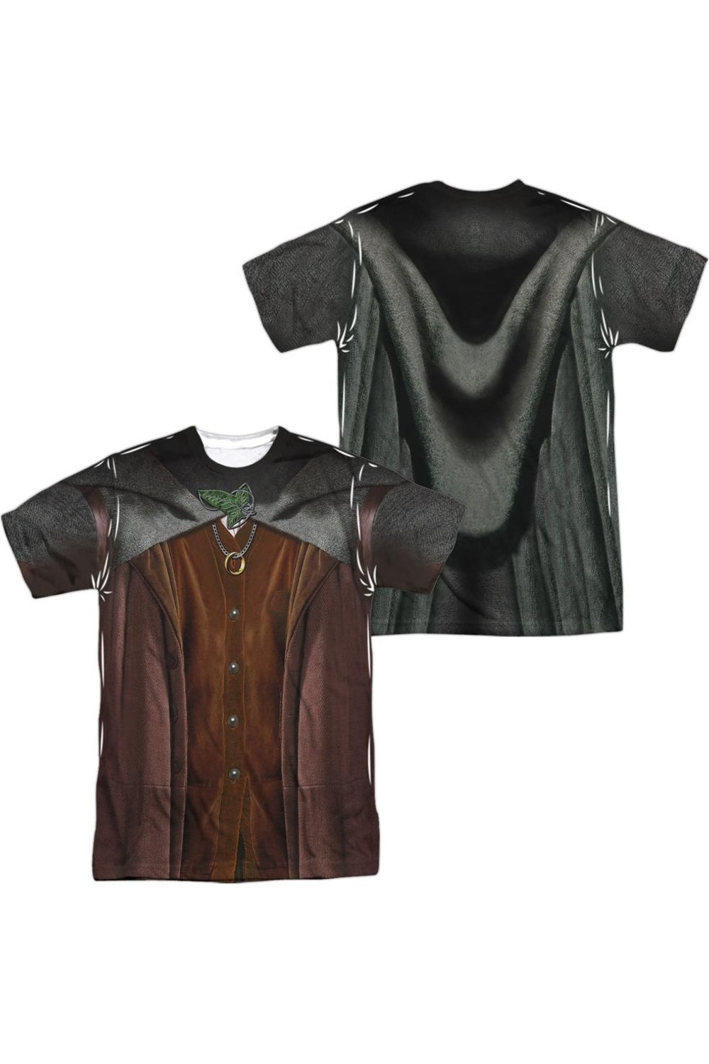 Lord Of The Rings Frodo Costume (Front/Back Print) Short Sleeve Adult Poly Crew Tee / T-Shirt. High-quality product suitable for regular use.