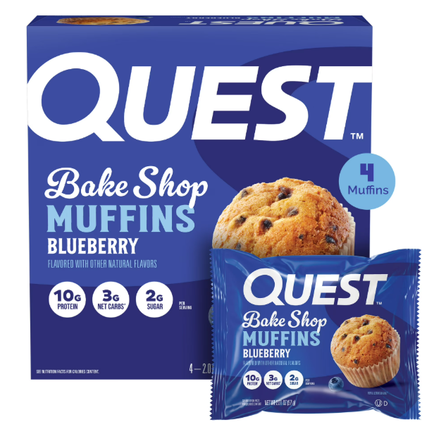 Quest Bake Shop Protein Muffins, Blueberry Flavor, 10g Protein, 3g of Sugar, 4 Count