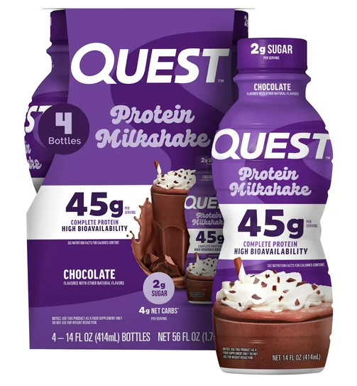 Quest Nutrition, 45g High Protein Chocolate Flavored Milkshake, Ready to Drink, 4 Count