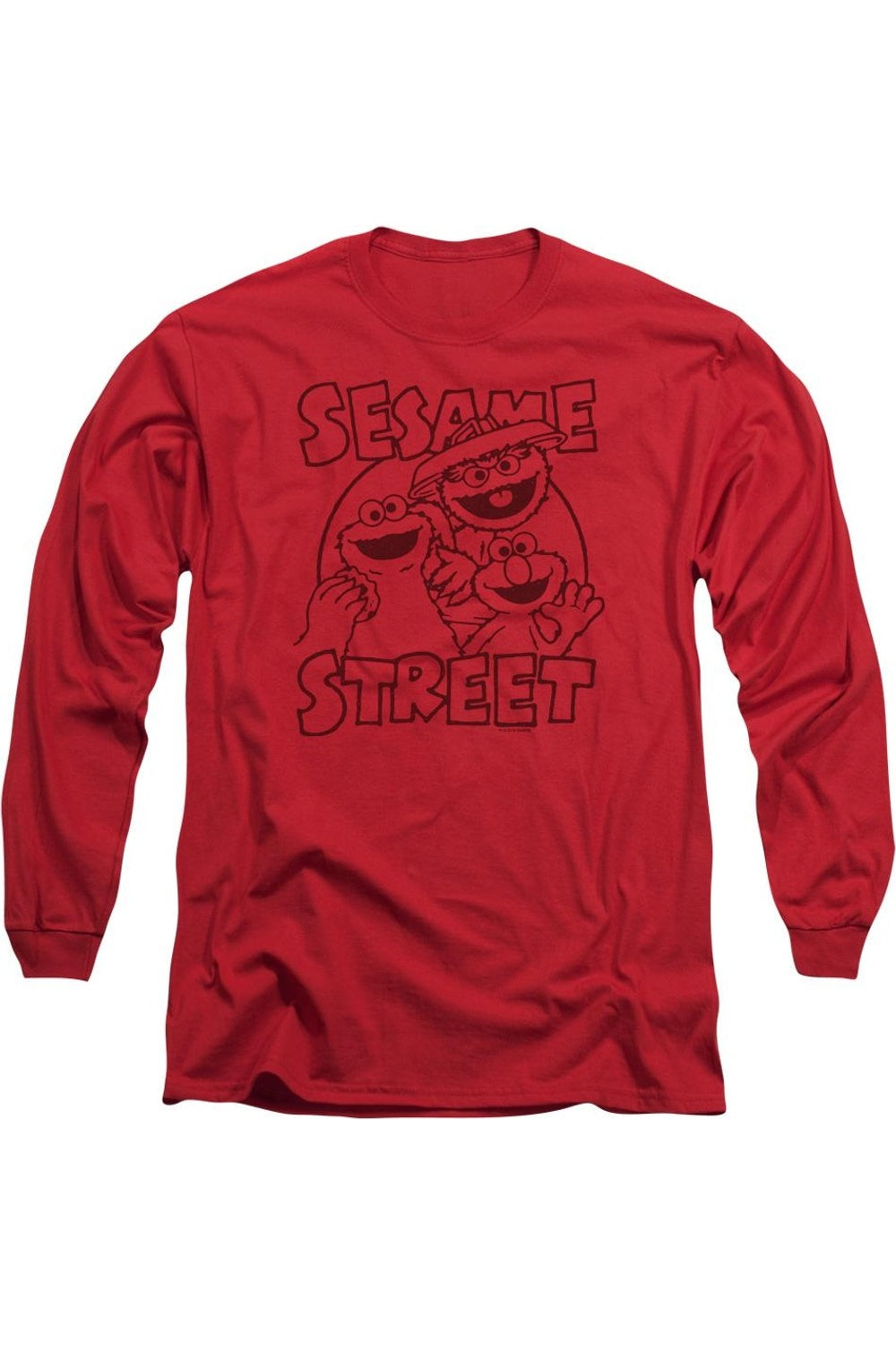 Sesame Street Group Crunch Long Sleeve Adult Tee / T-Shirt. High-quality product suitable for regular use.