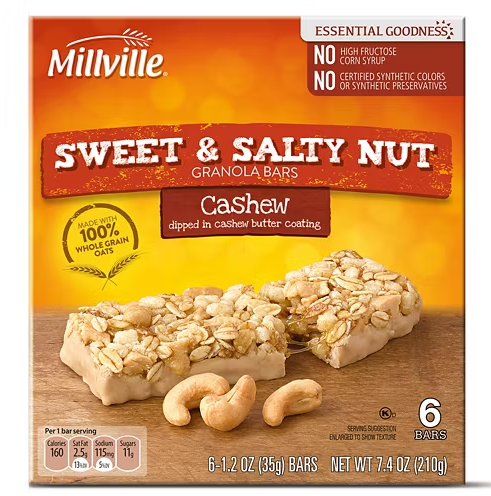 Sweet & Salty Nut Cashew Granola Bars, 6 count