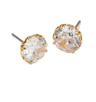The Kate Spade New York That Sparkle Round Earrings are stud earrings made from gold-plated brass and set with bold, faceted cubic zirconia crystals. They are designed for everyday elegance and feature the brand's signature spade detail on the back posts.