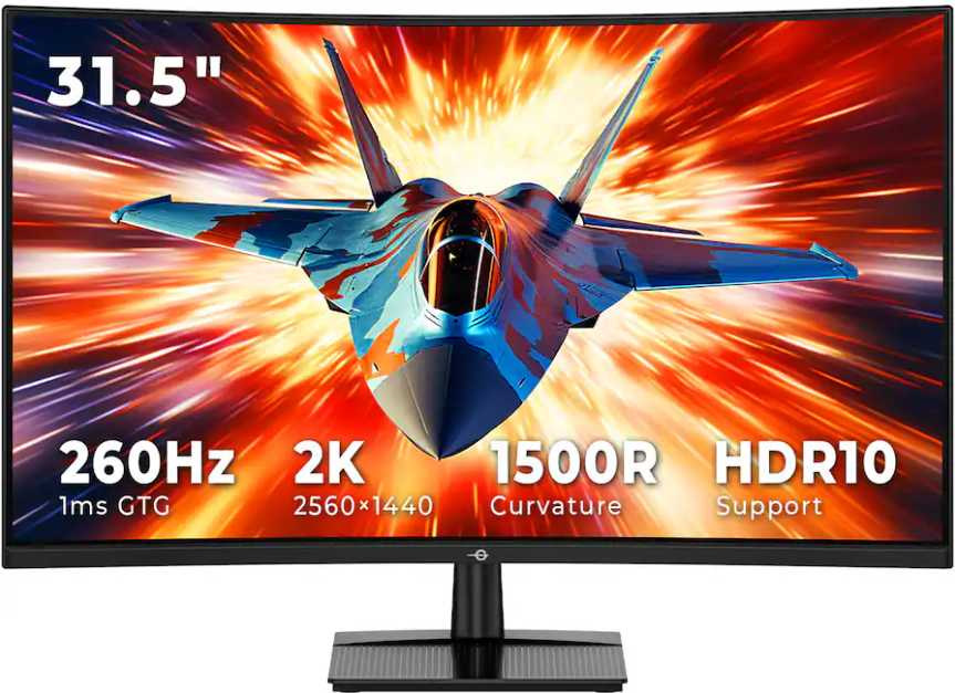 Titan-army - C32C1S 31.5 Inch 2K QHD Curved Gaming Monitor, 260Hz HVA LCD, 1ms GTG, FreeSync, 125% sRGB HDR10, Low Blue Light, VESA - Upgraded Black