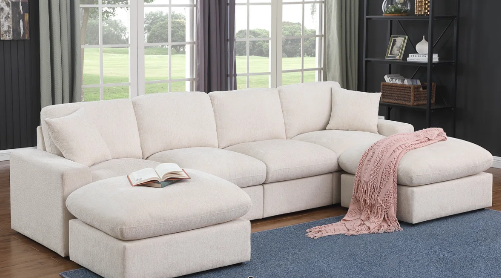 This modular sectional sofa is a great way to bring multiple seating options to your living room. It includes a left arm chair, right arm chair, two armless chairs, and two ottomans. Each piece is crafted from solid and engineered wood with barely-there legs for an approachable low-profile look. This sectional's upholstery comes in a hue and fabric of your choice to suit your space's overall aesthetic. Foam-padded interiors provide just the right amount of cushioning as you spread out and lounge after a long day.