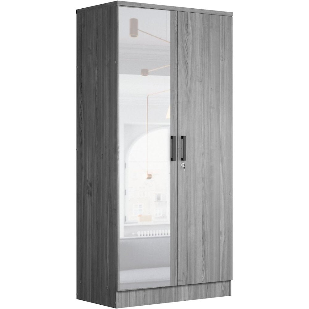 SKU:Two Door Armoire Wardrobe With Mirror (Grey)