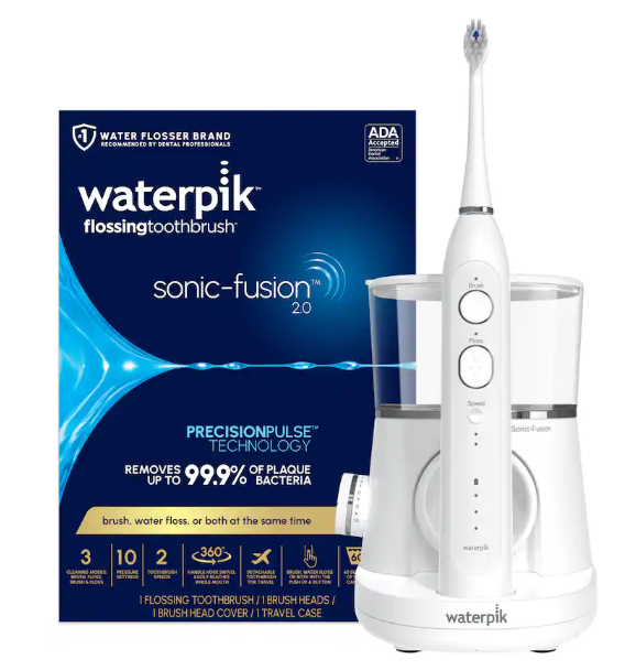 Sonic-Fusion 2.0 White combines the power of a sonic toothbrush with the proven effectiveness of a Waterpik water flosser