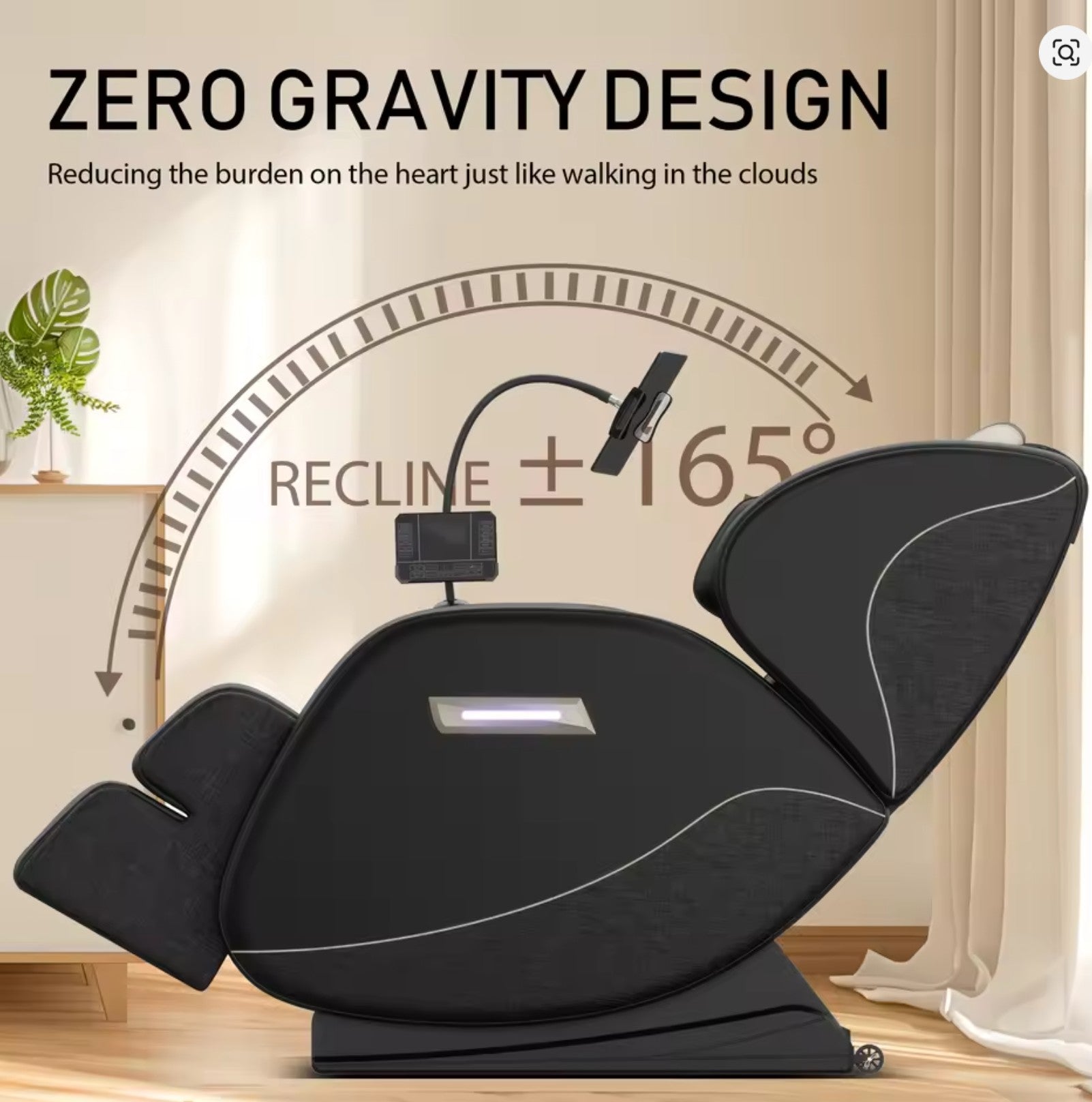 Humanized Design: Featuring rollers at the bottom, this massage chair is easy to move around the room. It includes a phone holder and Bluetooth connectivity, allowing you to enjoy music during your massage. The chair's side breathing blue lights create a calming atmosphere, helping you relax even more. This full-body massage chair can accommodate individuals weighing up to 180 pounds and standing as tall as 6 feet.