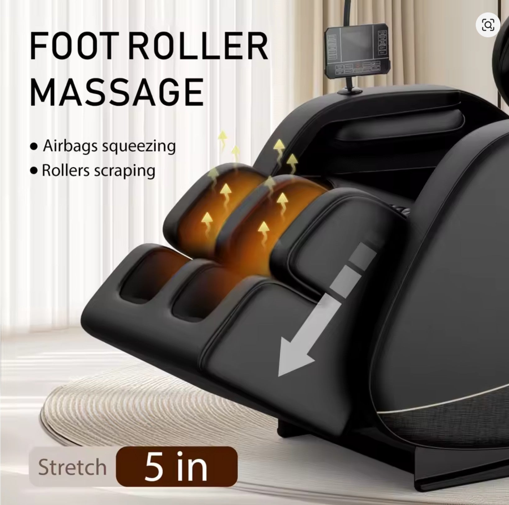 Foot Relaxation: Designed with a retractable footstool to accommodate various heights, the chair provides a kneading massage at the base of your feet. The rollers gently stimulate acupuncture points, while the heating function for the legs enhances circulation and relieves tension in the muscles of the legs and feet.